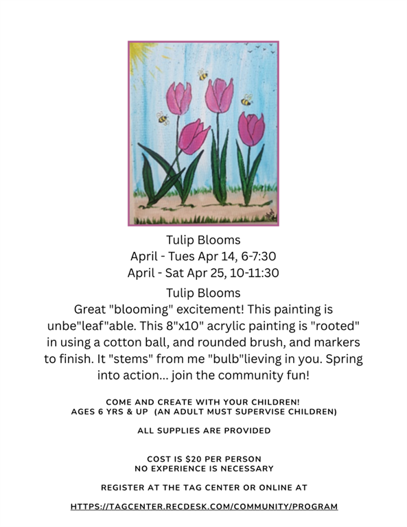 Sign up online or in person at the TAG Center https://tagcenter.recdesk.com/Community/Program